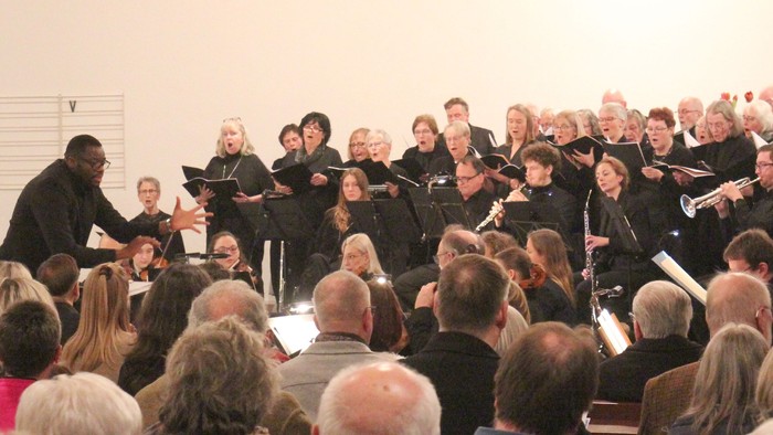 Die Dekanatskantorei, das Junge Sinfonieorchester Wetzlar und die Solisten haben unter der Leitung von Dekanatskantor Katamba Kazaku ihr Publikum in Weidenhausen auf die Adventszeit eingestimmt. (Foto: Klaus Kordesch /eöa)