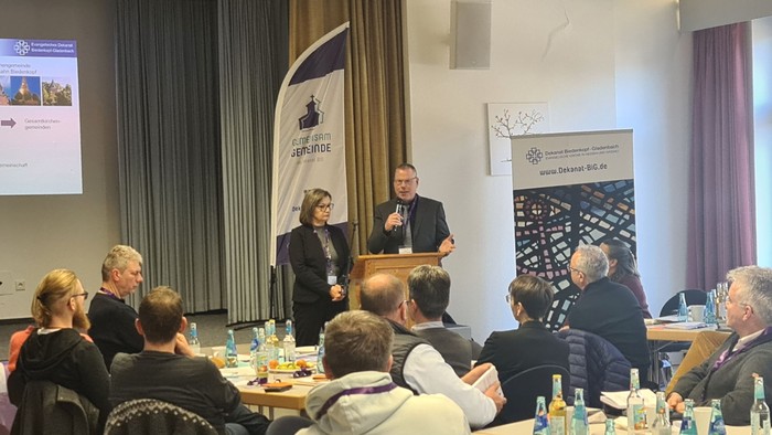 „Veränderung tut weh, aber sie birgt auch Chancen“, betonte Friedrich. „Es geht darum, Kirche neu zu denken – ohne Angst, aber mit Vertrauen.“ Momentan müsse man „Abschied nehmen von einer Gestalt von Kirche, die wir alle lange als wertvoll und segensreich erlebt haben.“ Da seien Geduld und Leidensfähigkeit gefragt, weil Veränderungen mit Abschieden verbunden seien. Vieles, was über lange Zeit als wertvoll und segensreich erlebt worden sei, könne angesichts weniger werdender Mitarbeitender und zurückgehender Ressourcen nicht bleiben wie bisher. „Aber wir werden Gemeinde sein und bleiben und trotz aller Konzentration nah bei den Menschen sein“, war sich Friedrich sicher.
