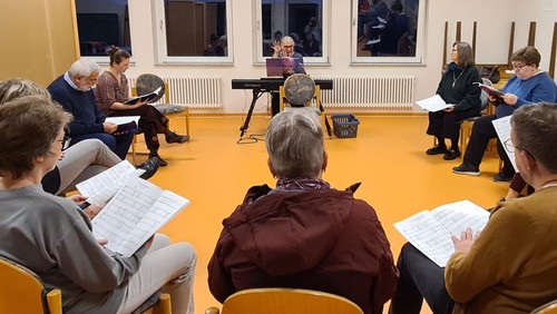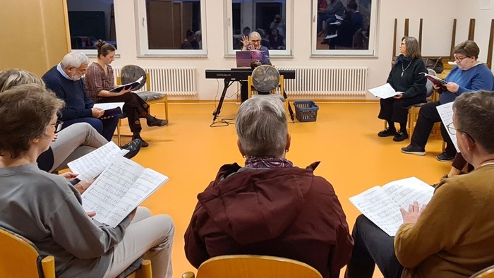 Lieder aus dem großen Chormusical "7 Worte vom Kreuz" singen konnten die Kirchenmusiker im Workshop mit Rut Hilgenberg. Noch kann man neu in die Proben der Projektchöre einsteigen. (Foto: Klaus Kordesch /eöa)