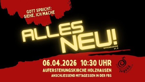 Wir starten mit einem Gottesdienst um 10.30 Uhr in der Auferstehungskirche in Holzhausen. Anschließend besteht beim Mittagessen in der FBS die Gelegenheit zum Austausch und (Wieder-)sehen.