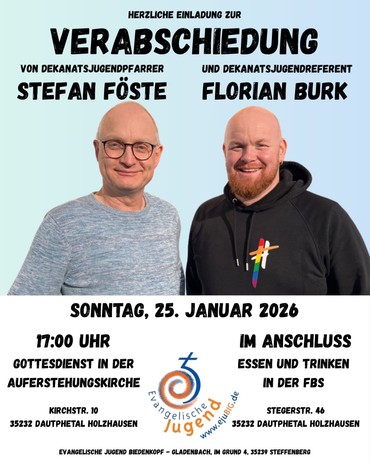 Für Stefan Föste endet am 31.12.2025 die halbe Jugendpfarrstelle. Damit verabschiedet sich auch Stefan aus der ejuBIG – als Gemeindepfarrer bleibt er unserem Dekanat aber weiterhin erhalten.